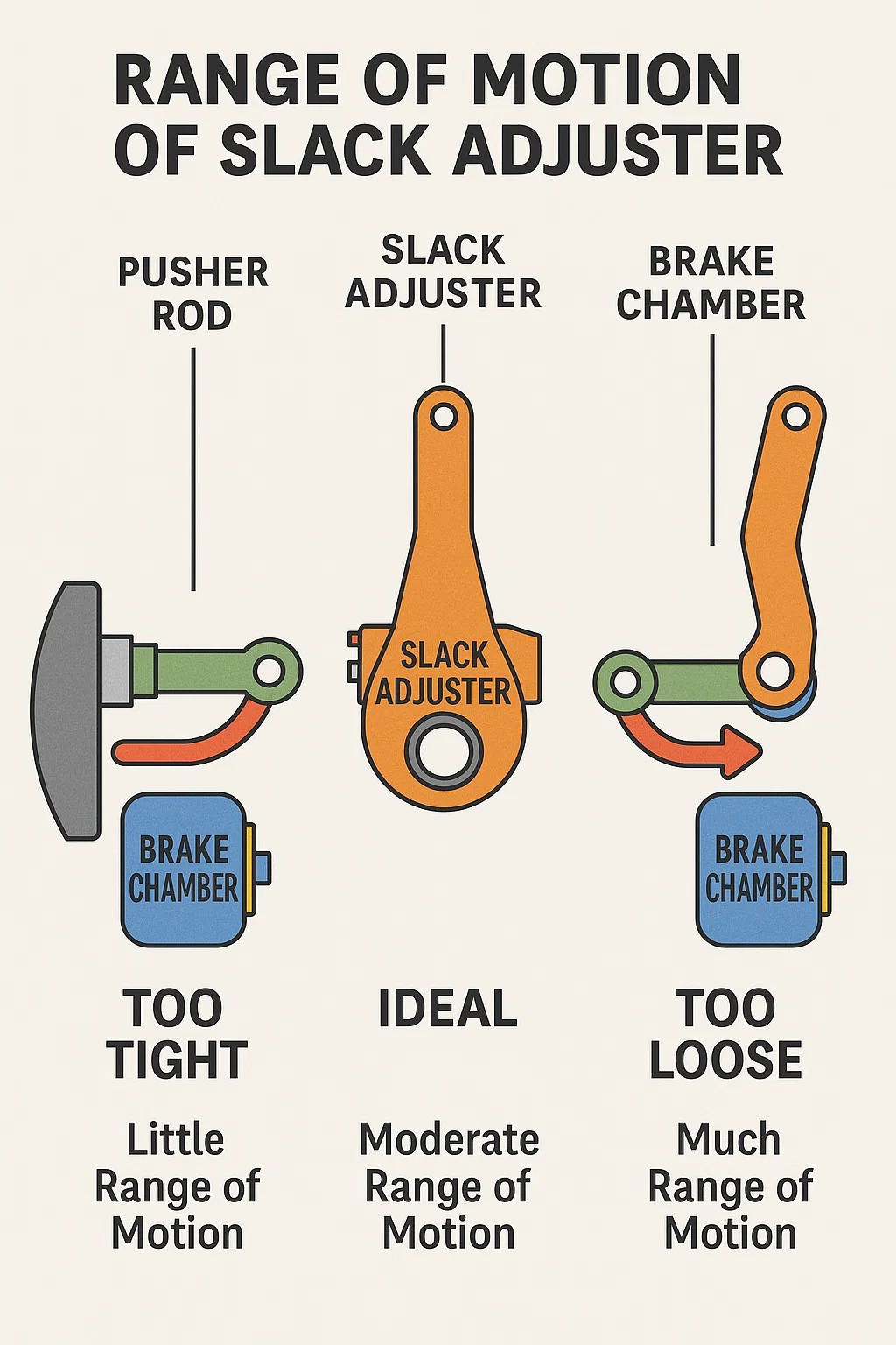 يشير "نطاق الحركة"، أو بشكل أكثر احترافًا، شوط الفرامل، إلى المسافة التي يتحركها أداة ضبط الركود عند سحب قضيب الدفع أثناء تنشيط نظام فرامل الهواء.