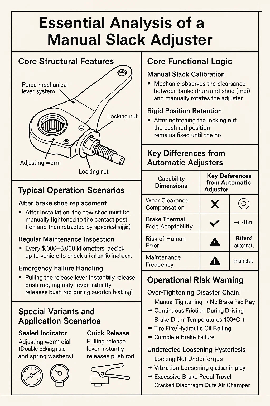 فحص الصيانة المنتظم: كل ما بين 5000 إلى 8000 كيلومتر ، يجب أن يتم رفع السيارة للتحقق من التخليص وإعادة تعديله إذا كان خارج التسامح. معالجة فشل الطوارئ: في حالة فشل الضابط التلقائي ، قم بضبط الخلوص يدويًا مؤقتًا للحفاظ على حركة المركبات إلى نقطة إصلاح.